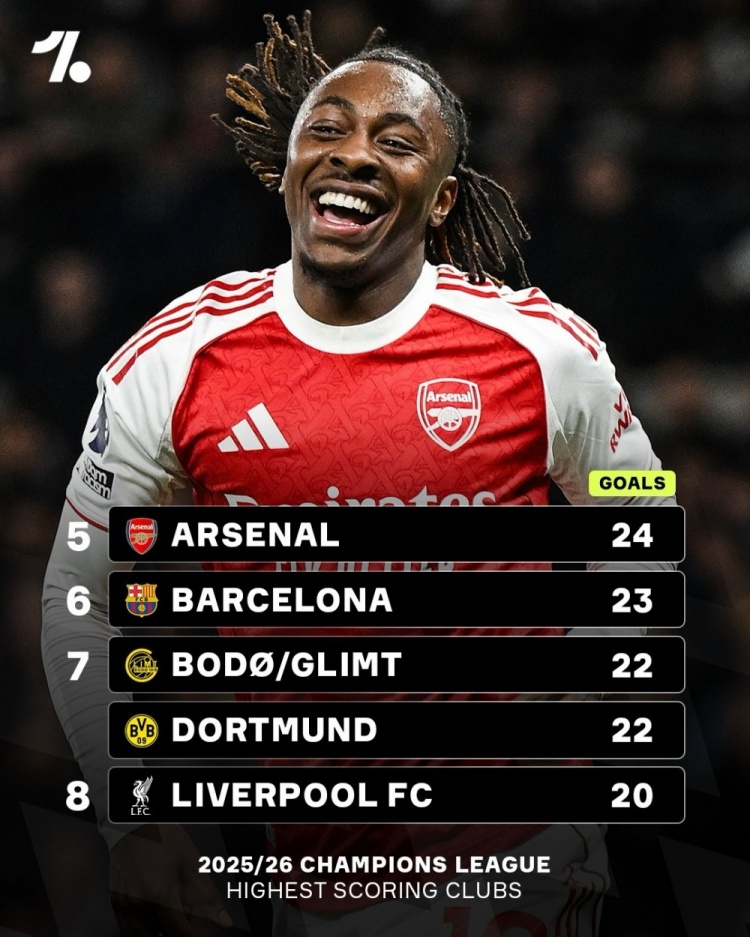 3月12日讯 Onefootball统计了各队本赛季欧冠的进球数量,并列出榜单,巴黎31球居首,马竞29球次席。